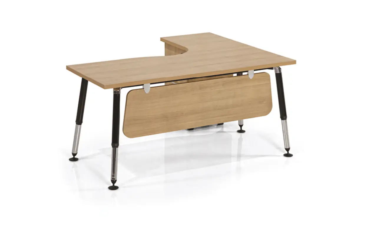 The MICRO BERIL table series offers a blend of style and functionality. These tables feature a 30mm melamine top with an 18mm melamine curtain and a central locking carrier. With high bedside table functionality, they are supported by electrostatically painted, chromed special metal legs. Available in three sizes: 140×130 cm, 160×130 cm, and 180×130 cm.