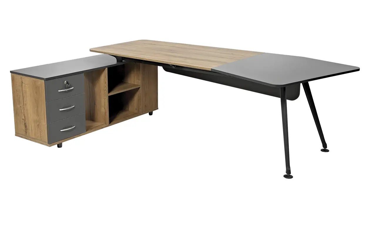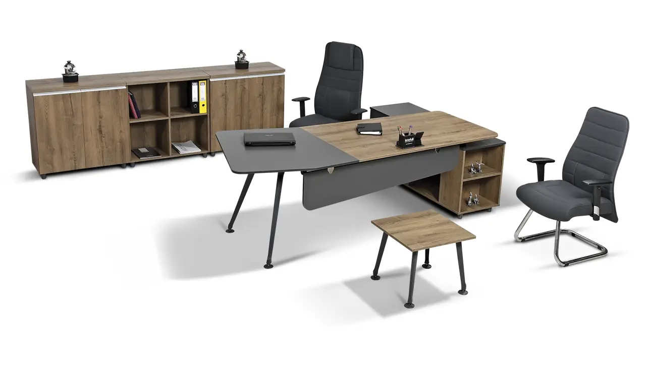 VALSE Table (VLS-250150): The VALSE table combines functionality and elegance. It has a sturdy 18 mm top and 18 mm screen. The aluminum injection legs add durability and elegance to the table. In addition, its three drawers allow you to store your documents in an organized way. Its large dimensions (250x150x75 cm) offer a spacious work or meeting area.