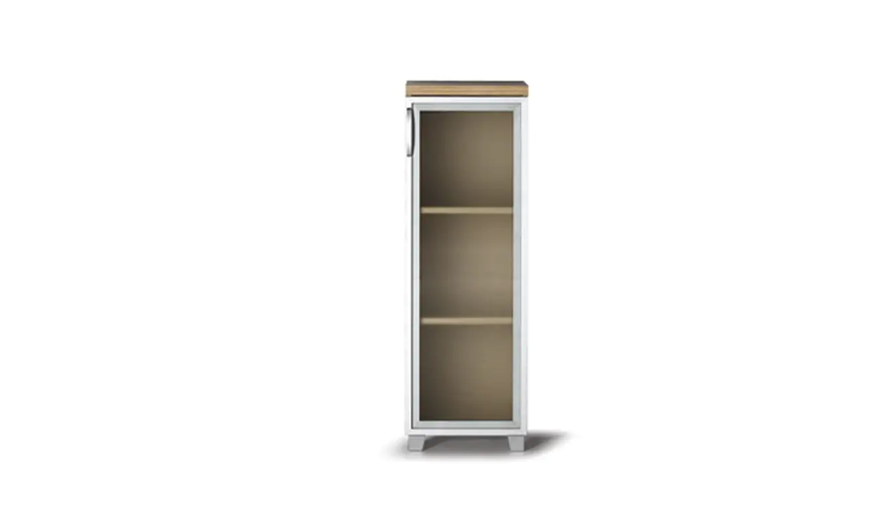 DLP-400123 | GABINETE, Corona de melamina de 30 mm, Cuerpo de melamina de 18 mm, Cubierta de vidrio de perfil MDF | L: 40 W: 38 H: 121 |