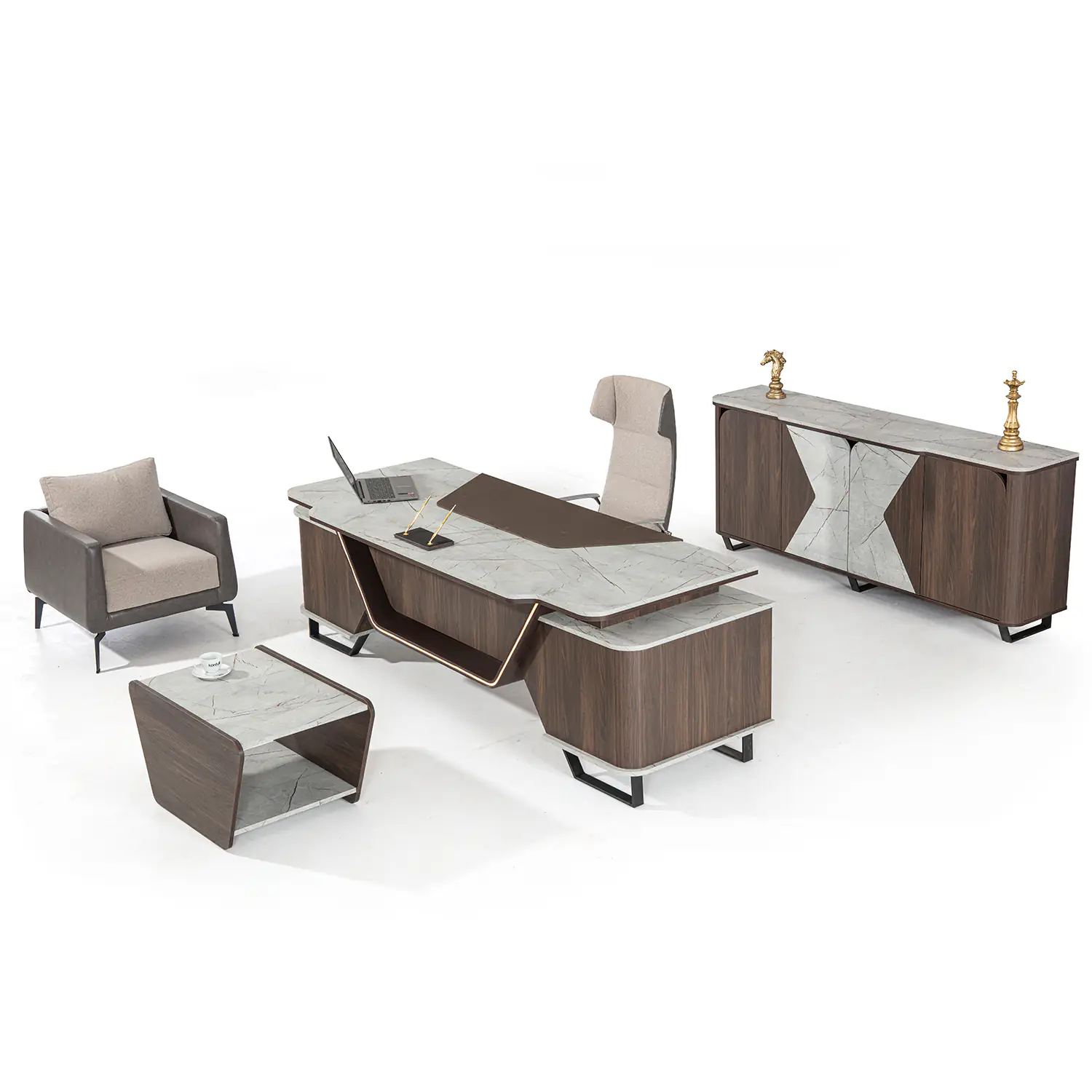 2024M-24090 | 2024 MASA ÜST TABLA 18+8 MM MYL DERİ KAPLAMALI VE LEDLİ ÖN PERDE MASA ALTI 3 ÇEKMECELİ KOMODİN VE DOLAP | L: 240 W: 90 H: 76 |